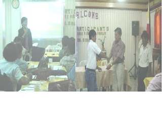 STAKEHOLDERS, AGRI-MOVERS. (L) Dr. Jovita Saguibo erases the doubts of farmers who are hesitant about going into banana production full-blast, during the forum with active and prospective banana growers. (R) Mr. Gerry Jose from the Provincial Agriculturist Office, acknowledges the participation of a farmer at the forum. M-16